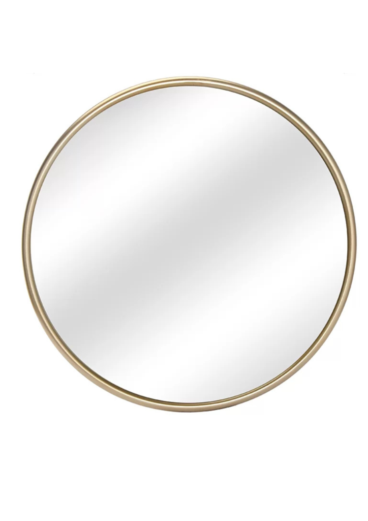 Above the dresser, I hung the Kelly Clarkson Home Gavarnie Bathroom Vanity Mirror. Yes, it’s technically a bathroom mirror, but I loved the shape and the vintage-inspired design so much that I knew it would make a gorgeous statement in the living room. The mirror adds depth and brightness to the space, making it feel larger and more open. Plus, it’s such a unique focal point that draws attention without clashing with the rest of the decor.
